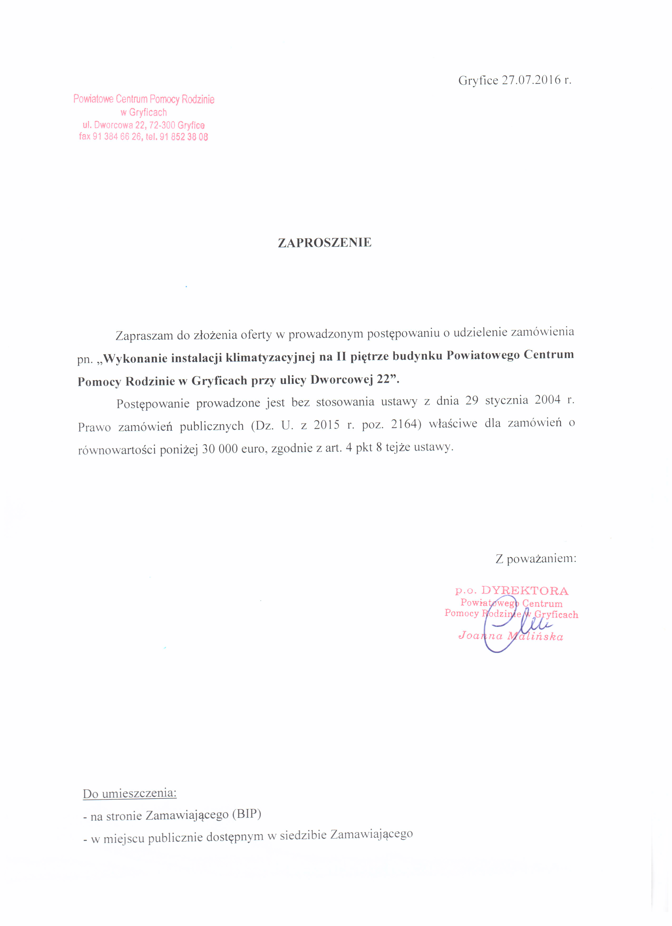 Zapytanie ofertowe -„Sprzedaż i dostawa sprzętu komputerowego i oprogramowania dla Powiatowego Centrum Pomocy Rodzinie w Gryficach”.